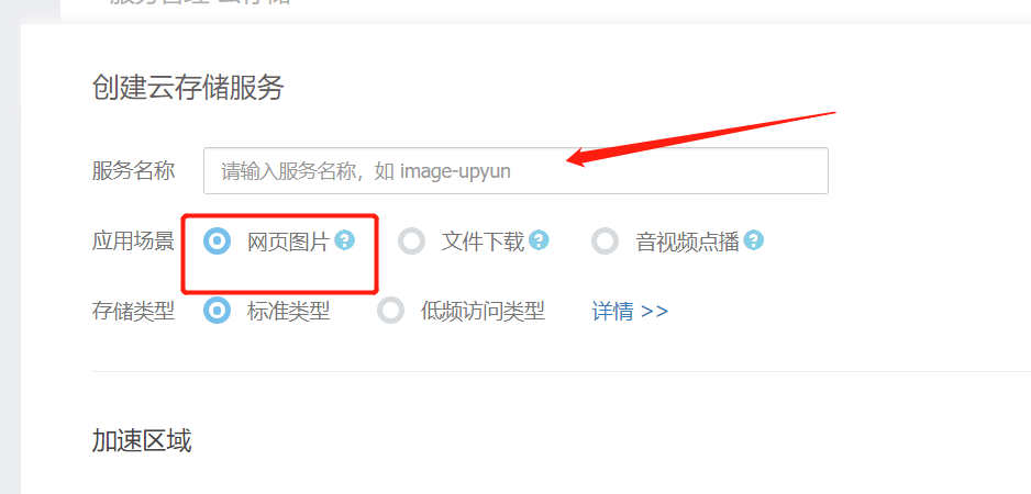 4.服务名称可以随便写一个,然后选择应用场景为网页图片