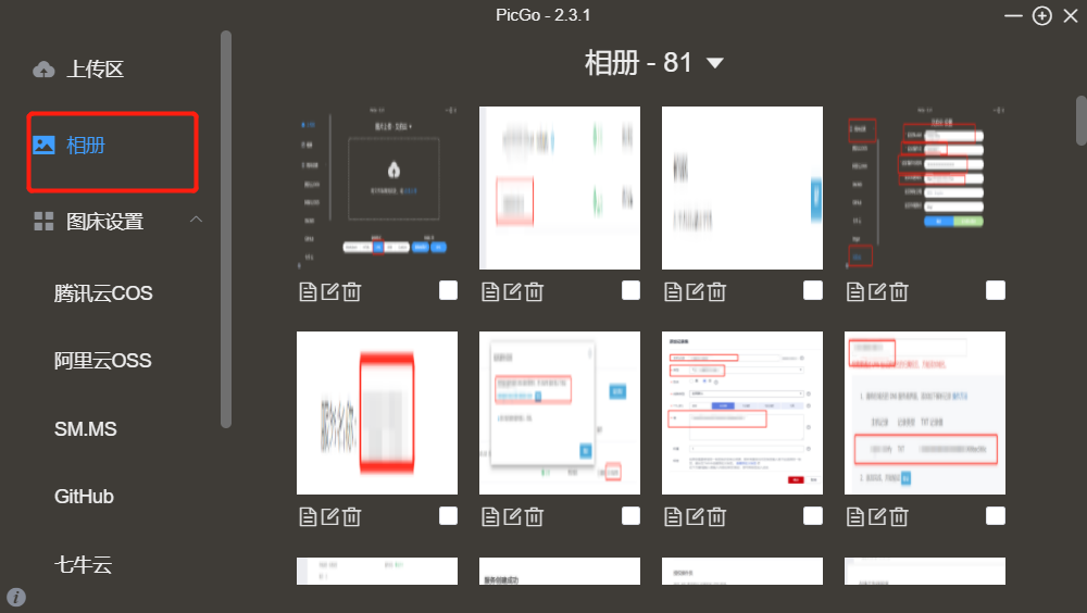- 上传成功后可以点击相册查看已经上传的图片(上传成功后链接会自动复制)
