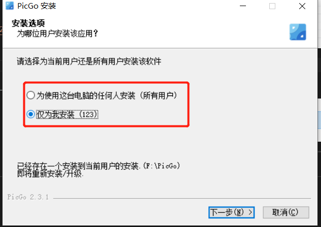 可以根据自己的实际应用,一般都是仅为我安装即可, 直接点击下一步