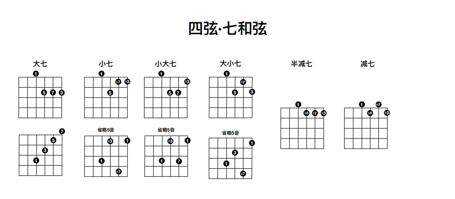 1 | 大七:根音 三音 五音 七音 | 七音是一弦的空弦 |